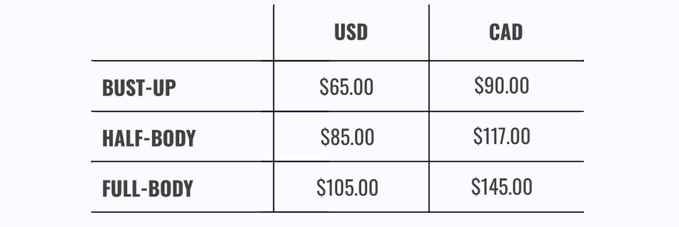 • You must provide photo references* and adequate details for the commissioned piece.